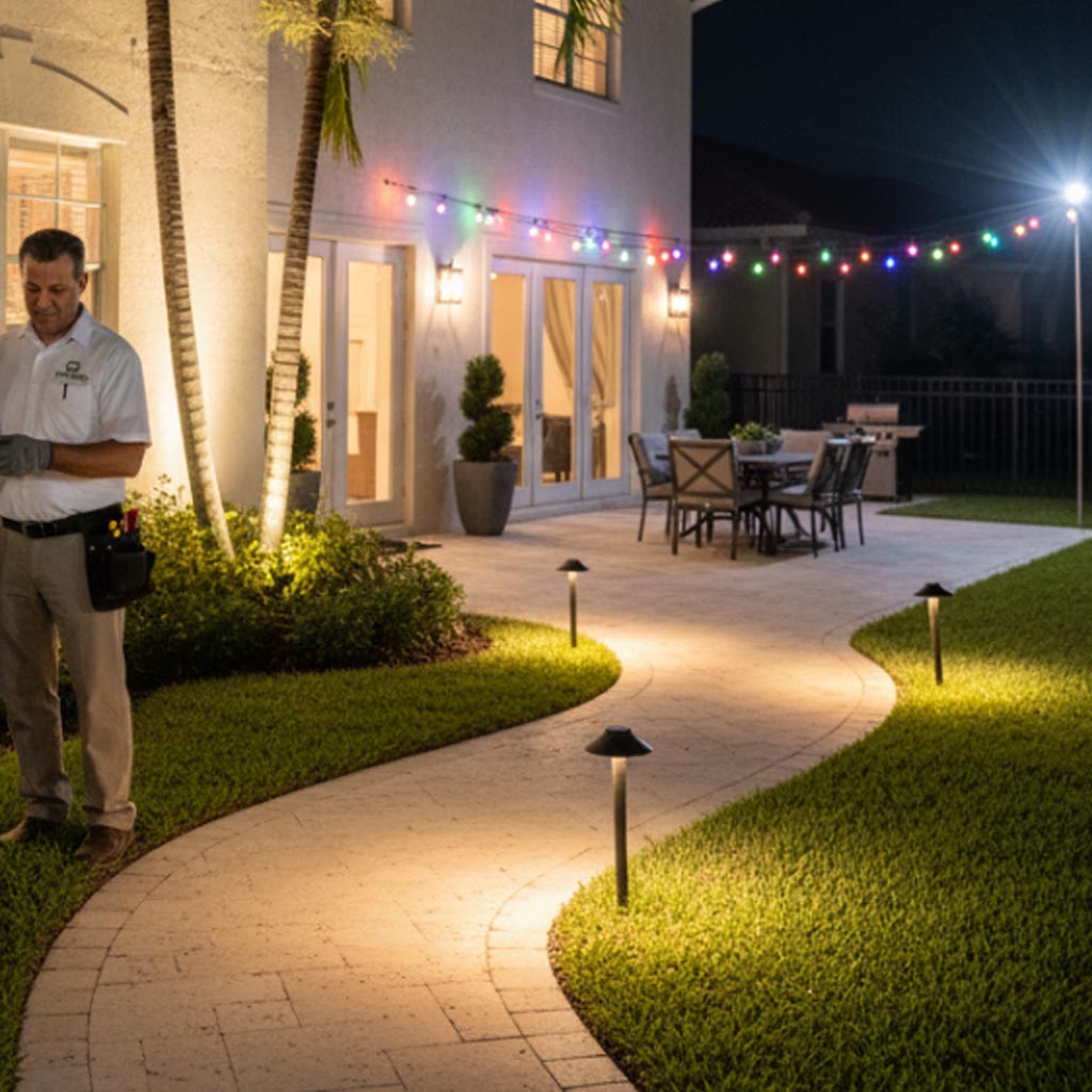 Miami’s weather can be really tough on outdoor lights. Between the salt air and the heavy rain, cheap lights can rust or stop working in just a few months. That’s why we only use high-quality, weather-proof fixtures that are built to last. We seal everything tight to make sure the water stays out and the light stays on, no matter how hard it rains.
